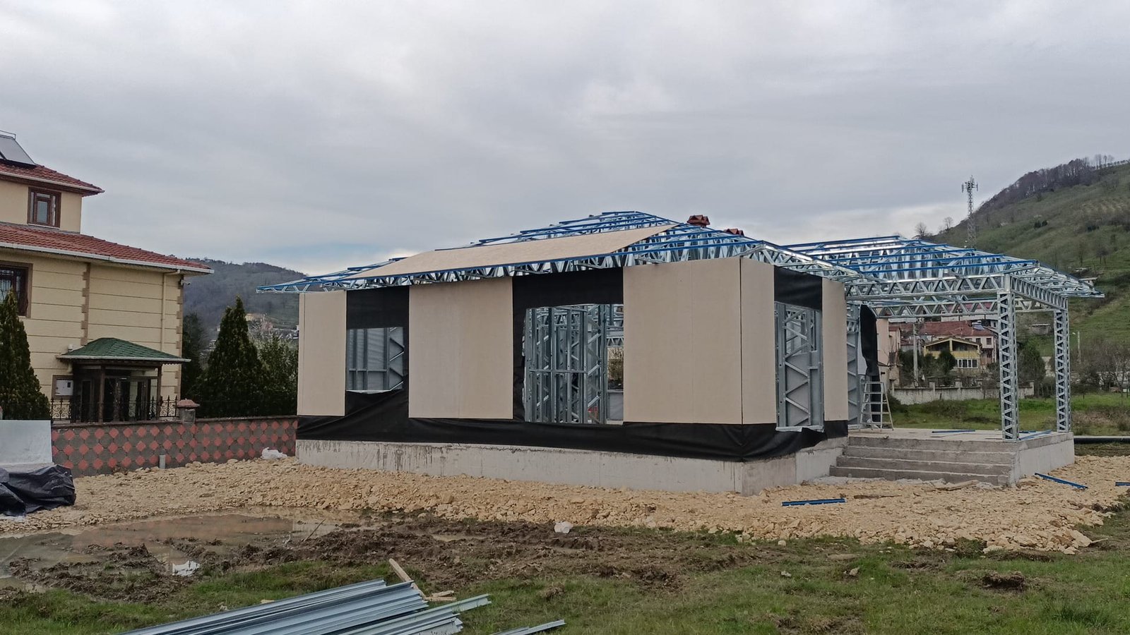 Το ελαφρύ χαλύβδινο έργο μας για το masjid και τα κτίρια πολλαπλών χρήσεων, το οποίο ολοκληρώθηκε στο Τσανάκκαλε σε μόλις 15 ημέρες, ξεχωρίζει για την πρακτική του εγκατάσταση, την ανθεκτική τεχνολογία κατασκευής και τον φιλικό προς το περιβάλλον σχεδιασμότου. Αυτό το έργο, το οποίο προσφέρει γρήγορες διαδικασίες παραγωγής και συναρμολόγησης χάρη στα συστήματα ελαφρών χαλύβδινων κατασκευών, παρέχει αισθητική και λειτουργικότητα μαζί. Ιδανικό για έργα σπιτιών λατρείας και προκατασκευασμένων λύσεων πολλαπλών χρήσεων, αυτό το κτίριο προσφέρει μια μακροχρόνια και οικονομική επιλογή. Για περισσότερες πληροφορίες, επισκεφθείτε τη σελίδα μας με τις λύσεις ελαφρών χαλύβδινων κτιρίων.
