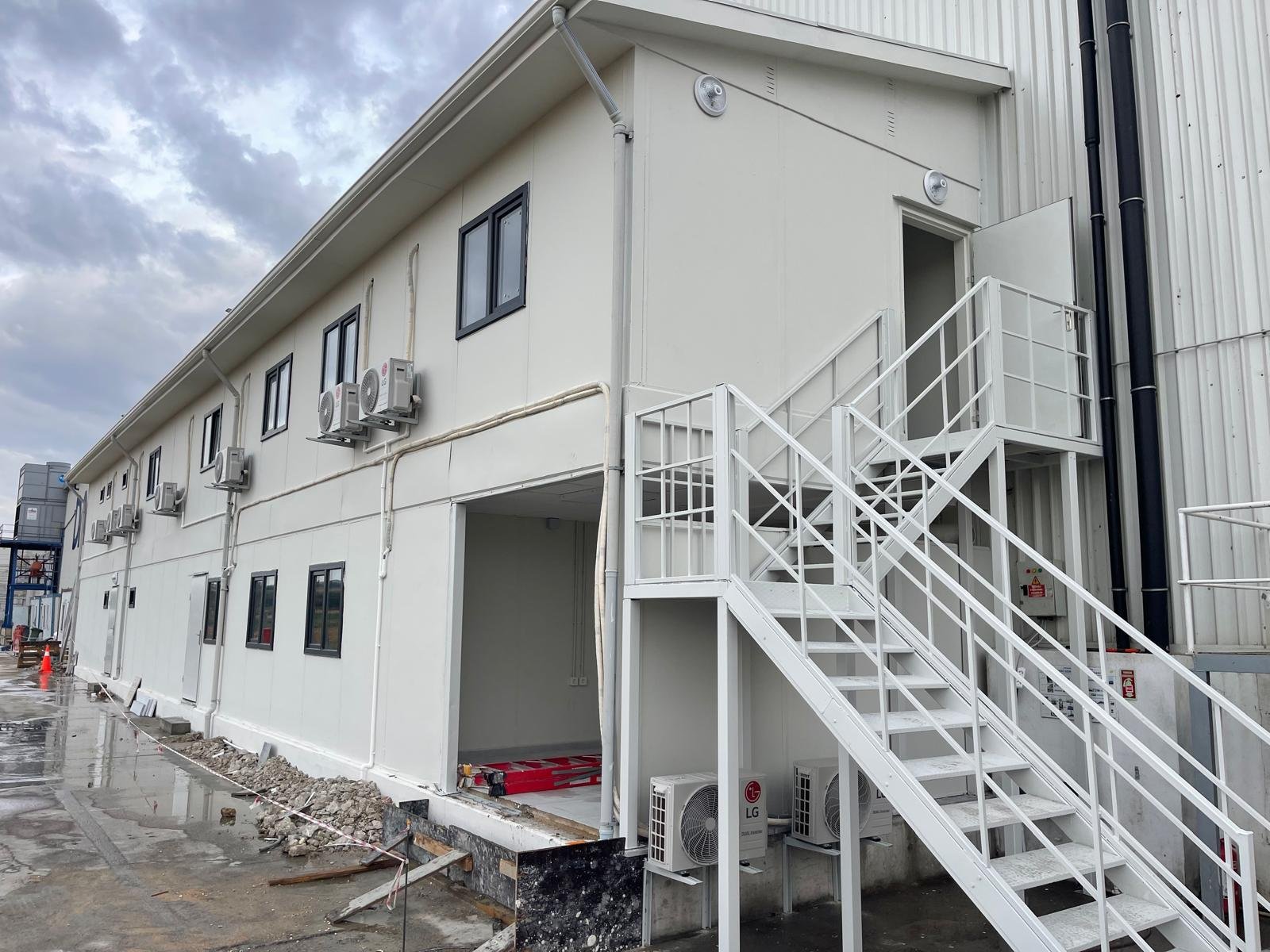 Τα προκατασκευασμένα κτίρια γραφείου διαχείρισης και καφετέριας συνολικής επιφάνειας 250 τ.μ. για το εργοστάσιο της Danone που βρίσκεται στο Tekirdağ ολοκληρώθηκαν με το κλειδί στο χέρι εντός 30 ημερών. Τα κτίρια αυτά, τα οποία υλοποιήθηκαν με μια λειτουργική και αισθητική σχεδιαστική προσέγγιση σύμφωνα με τις ανάγκες των χρηστών, αποσκοπούσαν στην αύξηση της λειτουργικής αποδοτικότητας του εργοστασίου.